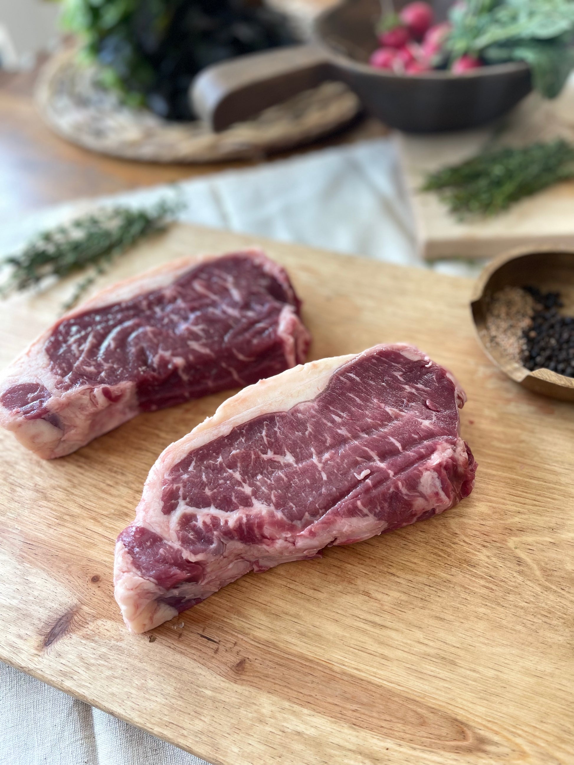 BONELESS NY STRIP | 5-6 (~14-16 oz) steaks (1 1/4" thick)